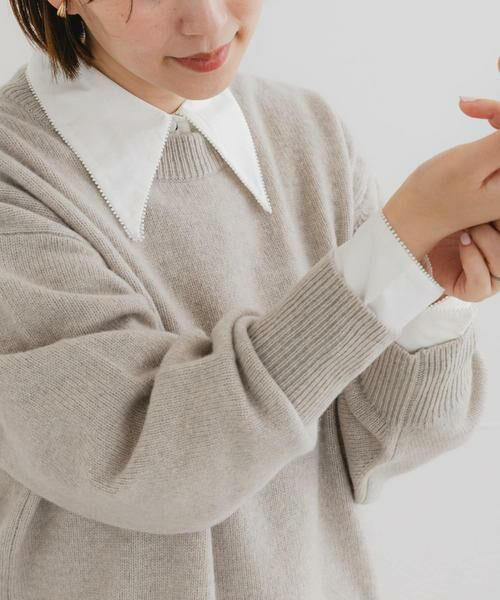 襟と袖口にあしらわれたトリミングレースがさりげない甘さをプラスし、一枚で着ても表情豊かなスタイリングが完成。肩線を少し落としたゆったりとしたシルエットは、トレンド感がありながらも、どんな体型の方にも馴染みやすいデザインです。ボタンを閉めてきちんと着こなすのはもちろん、羽織りとしてカジュアルダウンしても◎これからの季節は、一枚でさらりと着こなしたり、ニットやスウェットのインナーとして襟元を覗かせたりと、様々なレイヤードスタイルを楽しんで。