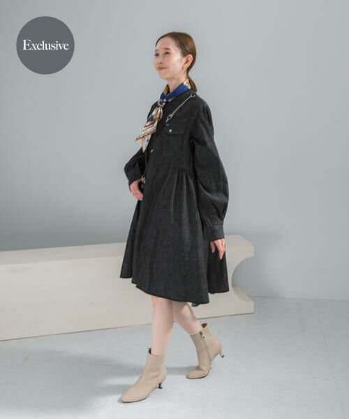 『別注』Wrangler×ROSSOのトレンドライクなミニ丈デニムワンピース。ミニ丈ですがデニム地で甘くなりすぎず、ウエスタン調のステッチデザインなど大人カジュアルな一着に仕上げました。胸下サイドに細かなギャザーを施すことで、女性らしい立体感のあるシルエットを実現。ゴアブーツやロングブーツとのバランスの取れた着こなしがお勧めです。ワンピースとしてはもちろん、ボタンを開けてライトアウターとしてざっくり羽織っても着映える一着に◎