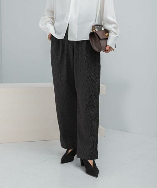 程よい光沢感と繊細なレオパード柄が華やかさを演出するジャガードパンツ。重厚感がありながらも軽やかで、ウエストのバックゴム仕様が快適な着心地を叶えます。程よくすとんと落ちるストレートシルエットは、秋冬のニットや厚手トップスともバランスよく合わせられ、上品なこなれ感をプラスします。取り入れるだけで秋冬の装いにアクセントをつけられる一本です。