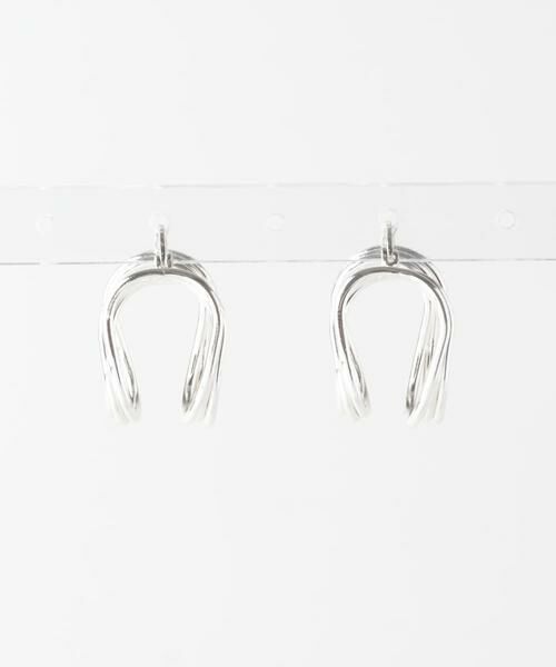華奢な3本線で描かれたカーブラインピアスは軽やかさを感じさせる抜け感と360度どこから見ても立体感のあるデザインになっております。カチッと留めるワンタッチタイプのピアスなのでキャッチを無くす心配もなくストレスフリーに着用が可能です。ピアスポストはヴィンテージ風の山型にカーブしたポストを採用しているので高見え効果も◎丁度いいサイズ感とシンプルなデザインで幅広いジャンルのコーデにマッチする上品なピアスとなっております。