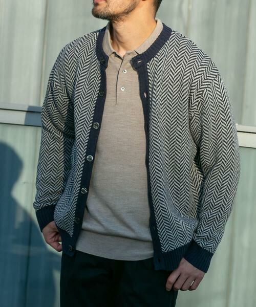 クラシカルかつキャッチーなヘリンボーンの総柄が特徴的なカーディガンが今シーズンも到着。