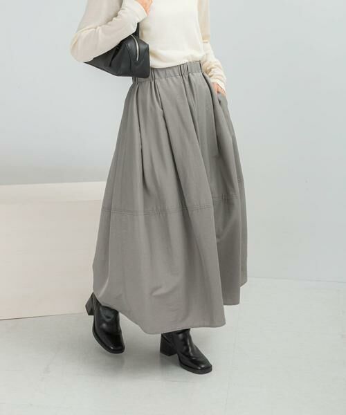 濡れたような光沢が印象的なヴィンテージサテンで仕立てた、上品なギャザースカート。ウエストはゴム仕様でリラクシーな履き心地を叶えつつ、腰まわりはすっきりと見える美しいシルエットに。ランダムタックが動きに表情を生み、トップスをインしてもバランスよく決まります。程よいコクーンシルエットに仕上げ、甘さを抑えたモードな印象に。毛足のあるニットやショート丈のアウターと合わせて、今季らしいスタイルを楽しめる一着です。