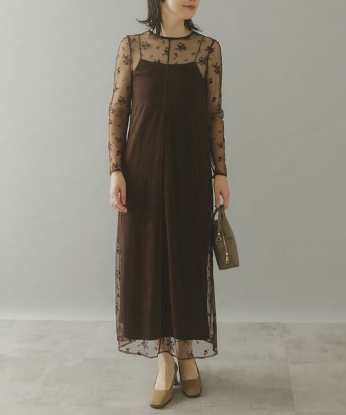 フラワーパターンが施されたフロッキー加工のチュールドレスと、柔らかなベロア素材のキャミソールドレスのセットアイテム。後衿にあしらったベロアリボンは、可愛らしさを引き立てつつ少し辛口な印象もプラス。ガーリーでありながらも、上品さとトレンド感を兼ね備えたデザインが魅力です。キャミソールドレスは2way仕様で、チュールドレスの下に着ても、上に重ねて着てもOK。どちらも単品でもお使いいただけるので、様々なスタイリングが楽しめます。袖口には上品なパールをあしらい、さりげないアクセントを加えています。