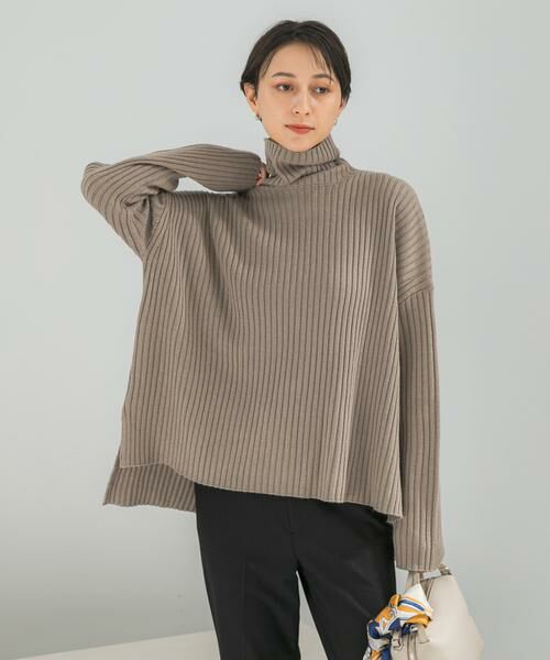 【ややオーバーなシルエットが抜け感を演出するタートルニット】