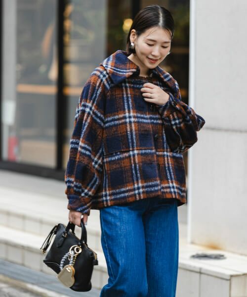 【冬の街に映える、クラシックなシャギーチェックコート】