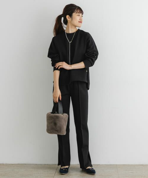 カジュアルさと上品さのバランス感が絶妙な、ポンチセットアップが新登場。バックファスナー仕様のベーシックなプルオーバー×美脚効果が抜群のイージーパンツとの、同素材セットアイテムです。プルオーバーは、ブランドロゴが刻まれたゴールドチャームを採用。パンツ共にサイドスリットを施すことで、こなれ感のある雰囲気に仕上げてくれます。滑らかなポンチ素材・寒い冬に嬉しい裏起毛の肉感は、デイリーユースに最適な一着です。