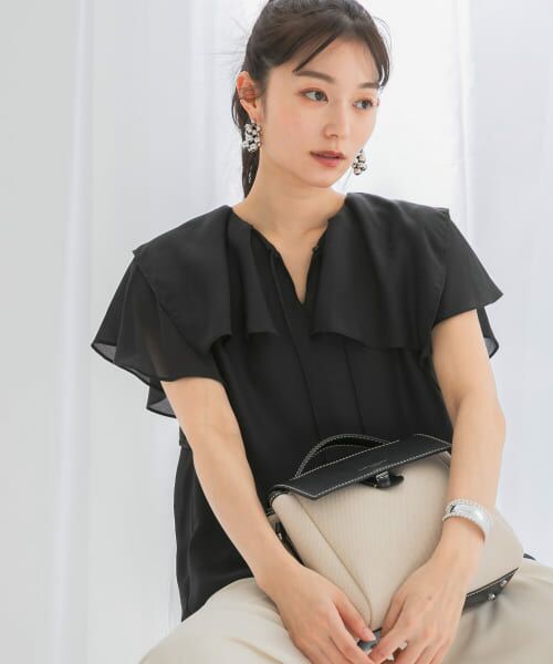女性らしさ漂うディテールが魅力の、フレアブラウスが登場。ふんわりと広がるフレアースリーブは、二の腕をカバーし華やかなオーラを発揮します。首元にはリボン×カラーデザインを施し、お顔周りを上品な印象に。落ち感のある甘さをおさえた素材感も魅力的です。ON/OFF対応可能な、幅広いスタイリングの主役になること間違いなしの一着に。
