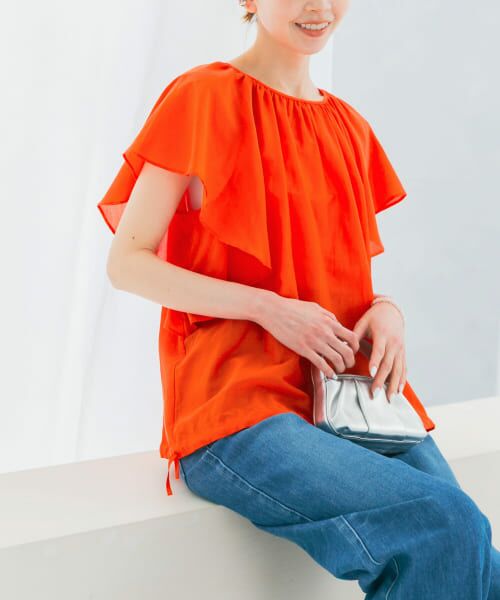 程良い光沢と、滑らかな肌触りが魅力のコットンシルクブラウス。繊細なギャザーが生み出す、エアリーなフォルムと立体的なスリーブデザインが女性らしさ漂います。裾にはシルエット変更が可能なリボンを付属◎テーパードパンツを合わせてお仕事スタイルや、カジュアルにサロペットなど幅広い着こなしが完成します。同素材のギャザースカート(品番:RAA5-25C502)との、ワンピース風スタイルもお勧めです。