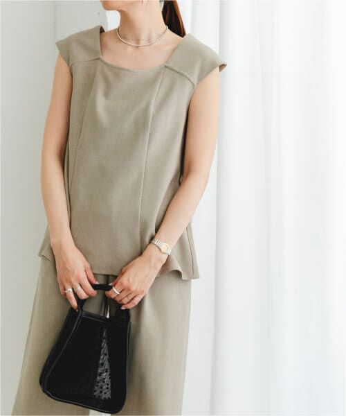 スクエアの首元と、バックボタンがポイントのデザインは大人の”ちょうどいい”を実現。薄手のナイロン素材はシワになりにくく、軽量なのでストレスフリーに活躍します。トップスの着丈やパンツのサイズ感にもこだわり、着るだけでスタイルアップが可能。セットアップはもちろん、上下単品でも使いやすい高コスパアイテムです◎