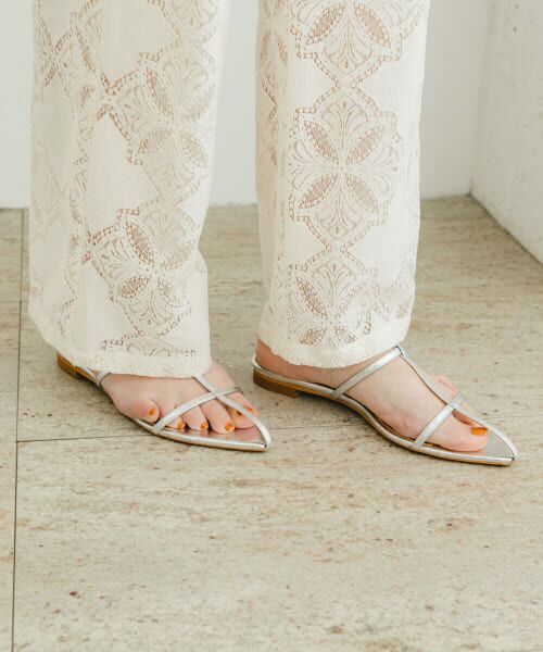 華奢なストラップデザインが、抜け感のある足元を演出するサンダル。甲を綺麗に見せるポインテッド仕様で、どこから見てもお洒落に決まるデザインです。足に優しい薄手のクッション性を持たせ、歩きやすさもポイント。コンパクトに持ち運びが出来るため、履き替え用として旅行のお共にもお勧めです。カジュアルから大人フェミニンな着こなしまで、様々なスタイルにマッチする一足に。