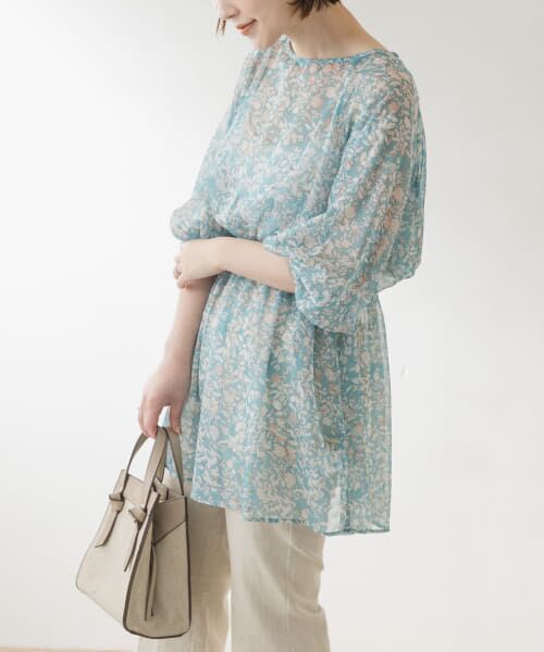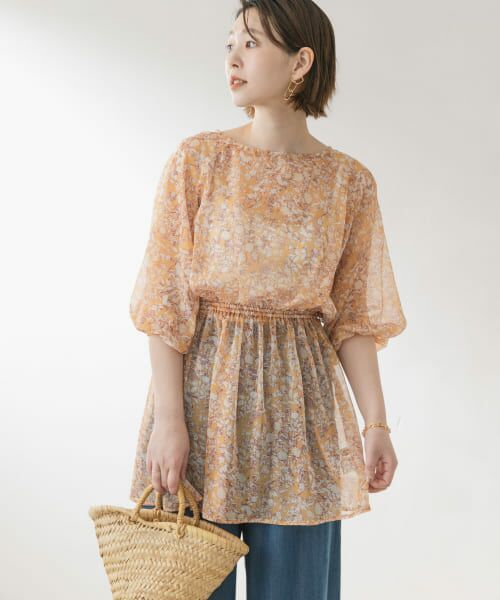 ギャザーの繊細なディテールと袖のボリュームが魅力のブラウス。取り入れるだけで気分の上がるカラー展開で、主張しすぎない小花柄がポイント。肌触りが良くシワになりにくいポリエスル素材とウエストゴムの仕様がストレスフリーな着心地を実現。ふんわりと揺れるシルエットが特徴で、フェミニンながらも上品に着て頂ける1着です。同型の素材違いで「RA15-23F004 ウエスト切替ブラウス」もご用意がございます。