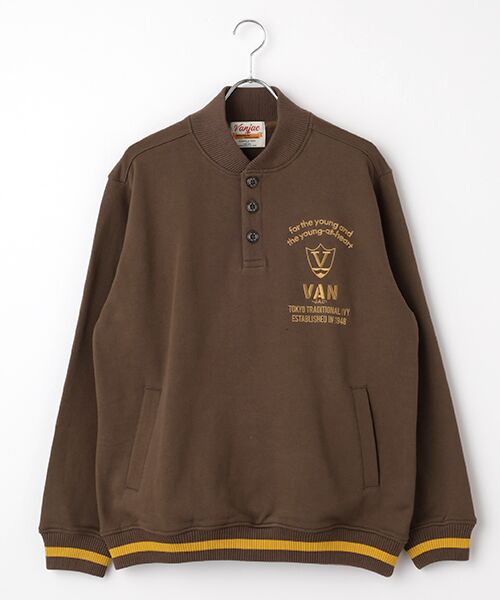アウターを着ない日でも、アウター感覚で着用できるヘンリートレーナ■しっかりとした厚みのある綿100%の裏毛を使用■これまでのラインアップにないスモーキーなブラウンカラー■衿や袖口には、伸縮性とデザイン性を備えた「2×2リブ」を採用■リブ部分にマスタードカラーのラインを入れることで、暗くなりがちな秋冬コーディネートのポイントに■胸元には<Vエンブレム>やロゴを刺繍で施し配置、シンプルながらもコーディネートのアクセントになる一着に仕上げました■オリジナルボタンを使用■トレーナー以上、アウター未満で昨今の気候に合わせやすいアイテムです