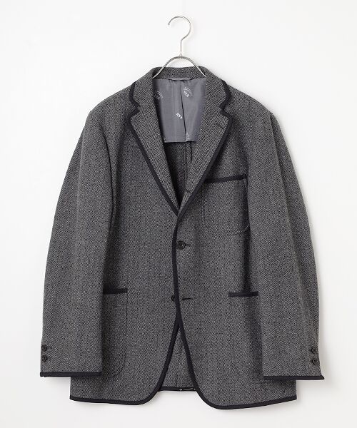 ジャケットを構築する「肩パッド」など副資材を極力省くことで軽やかに肩ひじ張らずに羽織ることが出来るアンコンモデル。独特の織り方が生み出模様と、温かみのある風合いが特徴の生地、ヘリンボーンツイードを使用し程よい肉感を目指しオリジナルで作製。濃色のパイピングがアクセントになっていてコーディネートしやすく、持っていると重宝する一着です。