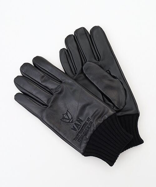 シックな大人のレザーグローブ■滑らかな質感の羊革が手に馴染み、品のあるアイテムに仕上げました■VANの頭文字の<V>をモチーフにしたエンブレムをモディファイしたデザインを刺繍で施し、さりげないポイントに■手首部分はニットでスムーズに着脱が可能■ツヤのある羊革をオールブラックでまとめ、上質でシックな印象に仕上げました■シンプルながら、存在感のある佇まいが魅力で冬の贈り物にもオススメです