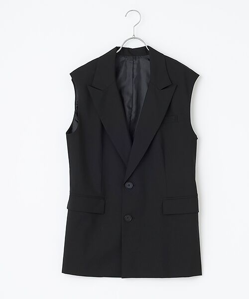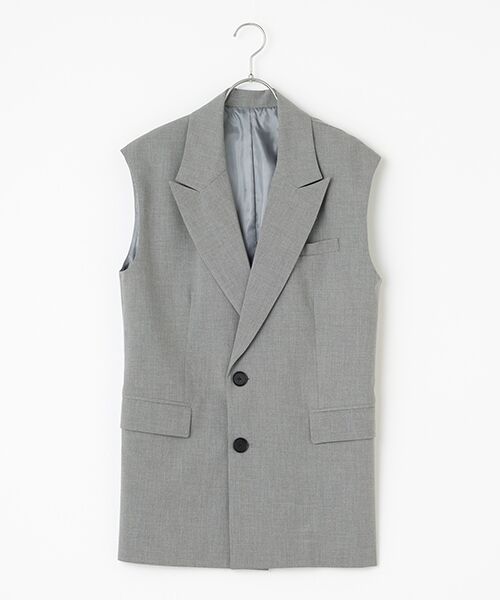 クラシックでありながら現代的なエッジを効かせたセミダブルテーラードジレ。メンズライクなBOXシルエットで、ゆったりとした印象を与えます。ピークドラペルのデザインが全体にシャープさを加え、洗練されたスタイルを演出します。シンプルながらも存在感を放つアイテムで、カジュアルからフォーマルまで幅広いシーンに対応します。