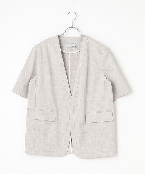 天然のリネンのような柔らかさとナチュラルな表情を持ちながら、吸水速乾でシワにもなりにくくウォッシャブル。しかも、リサイクル原料なのでサスティナブル。上質で飽きのこないシンプルなジャケットは、夏にも羽織っていただける五分袖のデザイン。少々大きめのサイズ感がより女性らしさを 際立たせて、こなれた印象を与えます。同シリーズのアイテムで様々なコーディネートを提案致します。