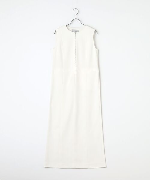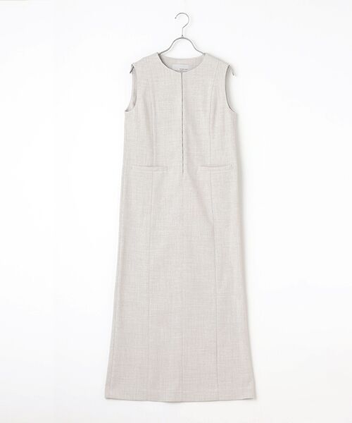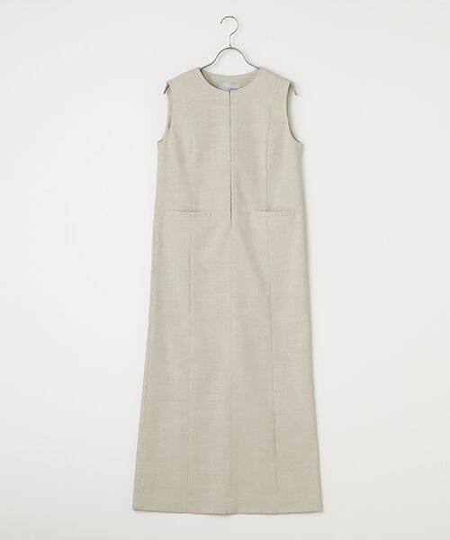 天然のリネンのような柔らかさとナチュラルな表情を持ちながら、吸水速乾でシワにもなりにくくウォッシャブル。しかも、リサイクル原料なのでサスティナブル。上質で飽きのこないシンプルなワンピースは、縦切り替えの効果もありスッキリとした細見えのシルエット。フロントの衿明きはスプリングホックテープで、しっかり止めたり、深めに明けていただくのもオシャレです。同シリーズのコーディネートやボレロカーディガン合わせもお勧めです。
