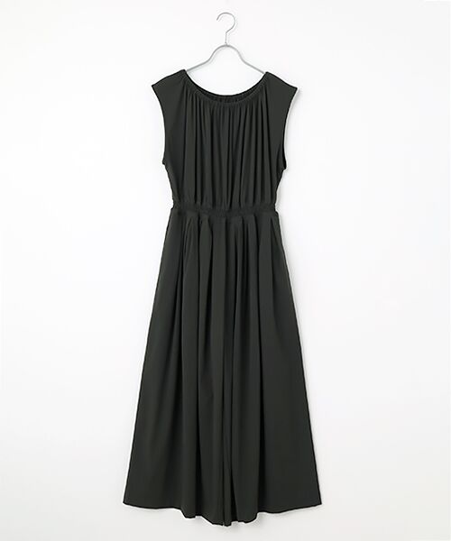 撥水で接触冷感でUVカットでイージーケア、軽くて縦横ストレッチなのでノーストレス。カジュアル素材でデザインは きれいめ、スタイリングにも迷わない、旅行や出張にも便利な、夏のお出かけにピッタリのシリーズです。たっぷりのタックギャザーで、一枚で様になるワンピース見えのコンビネゾンです。ボートネックはリゾートっぽくオフショルダーにしたり、ワンショルダーやベアトップにしたりと、抜け感が楽しめます。