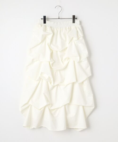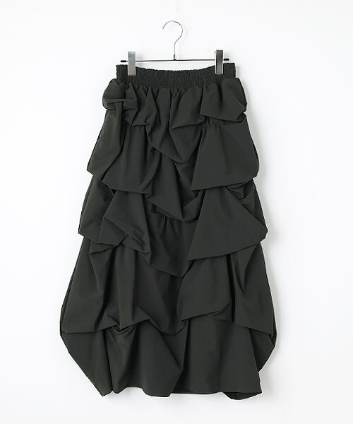 撥水で接触冷感でUVカットでイージーケア、軽くて縦横ストレッチなのでノーストレス。カジュアル素材でデザインは きれいめ、スタイリングにも迷わない、旅行や出張にも便利な、夏のお出かけにピッタリのシリーズです。ウエストシャーリングで楽な履き心地、ランダムにバルーンを入れた迫力あるボリュームスカートです。そのままで存在感があるので、コンパクトなTシャツ合わせや、さらりとシンプルなジャケット合わせを提案いたします。