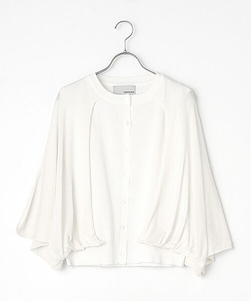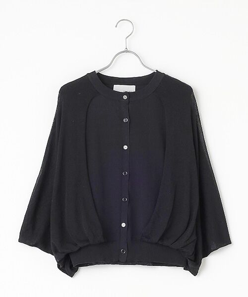 ケープデザインをドッキングさせたユニークなカーディガン。ドライタッチの素材感が特徴で、さらっと羽織れる軽やかさが魅力です。日除け効果もあり、夏のカジュアルスタイルにぴったり。羽織るだけでエレガントでありながらリラックス感も演出できて、季節を問わず活躍するアイテムです。
