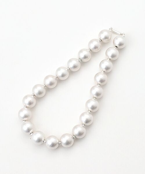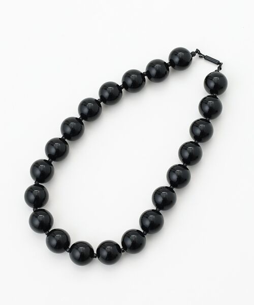 直径14mmの大きなボールビーズですが着け心地は軽く、ジャストサイズのチョーカーはとってもクールで大人なデザイン。存在感がありながらシンプルなので使いやすく、クルーネック、シャツカラー、テーラードにもピッタリはまり、コーディネートにメリハリと旬度をつける底上げアイテムです。モードなブラックとシャープで鈍い光沢が様々なカラーにマッチするプラチナの2色展開です。