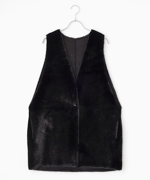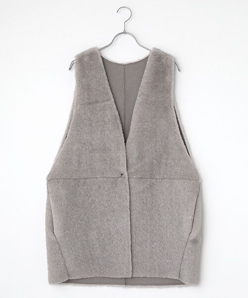 手触り抜群のふわふわなラクーン風フェイクファーと、上質なスエードがリバーシブルで楽しめるアイテムです。アームホールを深めにデザインし、オーバーサイズのシルエットが特徴。ゆったりとした着心地で、重ね着にも最適です。ラクーン風フェイクファーは、暖かさと柔らかさを兼ね備え、寒い季節でも快適に過ごせます。一方、スエード面はシックで洗練された印象を与え、カジュアルからフォーマルまで幅広いスタイルにマッチします。