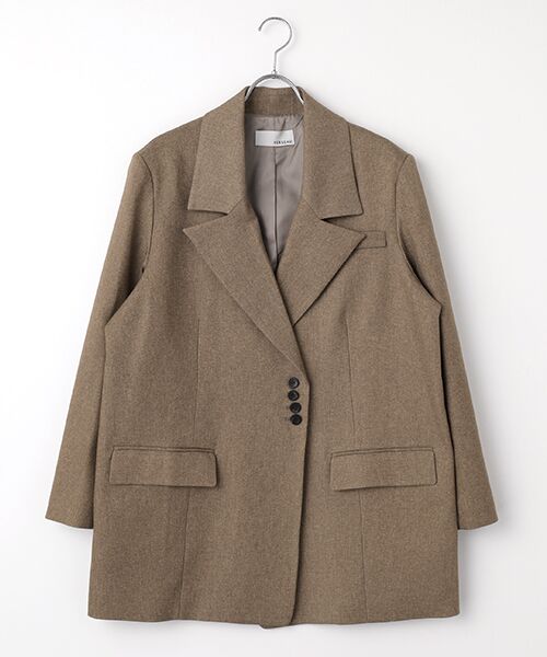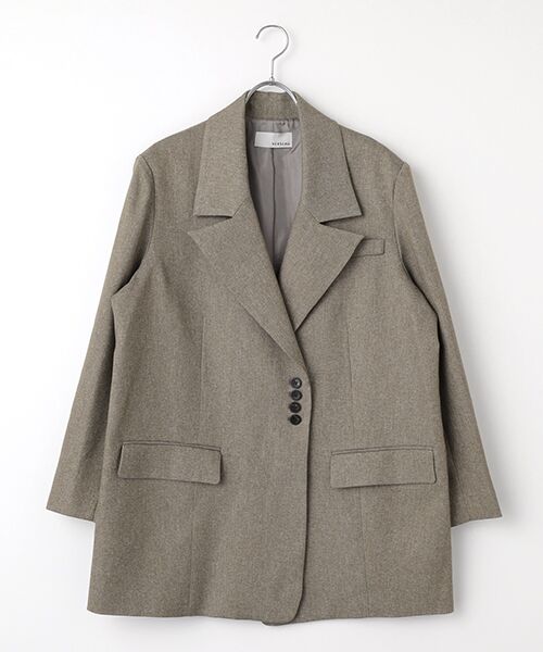 ハリコシのある素材感とメンズ調のミックスカラーがハンサムなジャケットです。ソフトダブルの打ち合いに袖口と合わせた重ね付けのフロント釦、別売りのウォレットチェーンを付けられるように胸ポケットと右腰ポケットにループを付けました。ニットもインできるゆったりめのサイズで、コートシーズン前のアウターとしても使えるアイテムです。