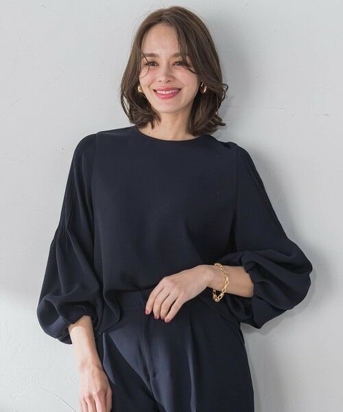 バルーンスリーブの袖口には、裏側がサテンゴム使用になっているのでタックアップして着こなすことができます。