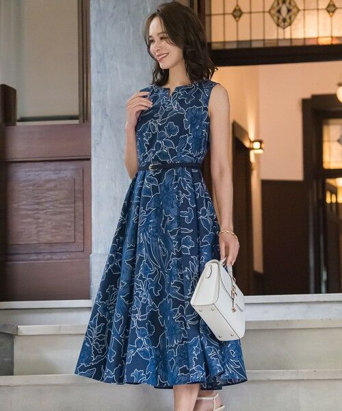 美しいフィットアンドフレアーシルエットに仕上げ夏の装いをエレガントに導きます。