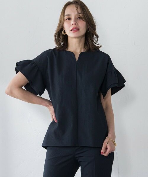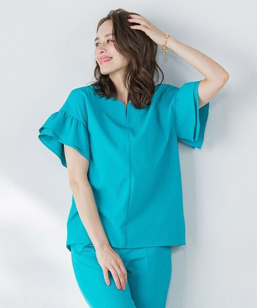 ネックラインはフェミニンなラウンドカットのキーネックデザイン。