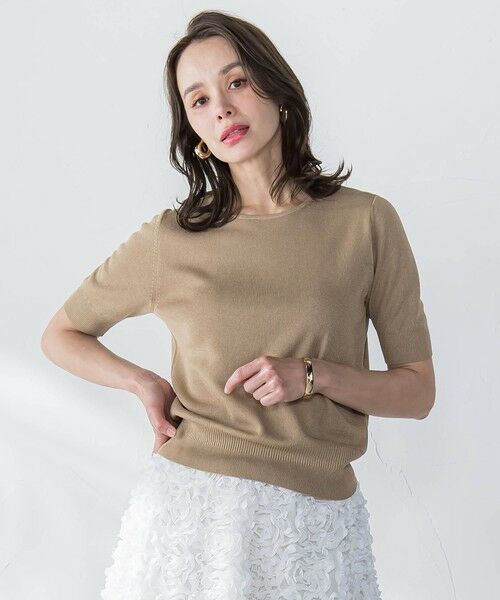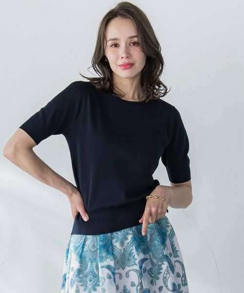 ハーフスリーブが好印象なニットトップス。