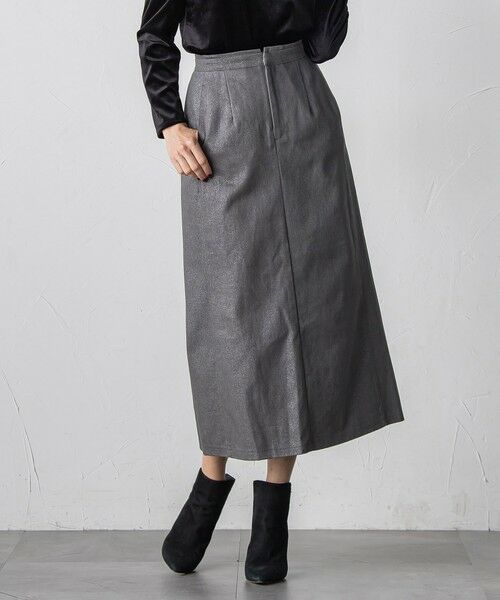 ラメのさりげないきらめきが上品に映える、タイトシルエットのスカート。