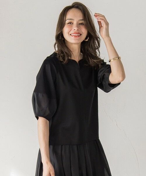 抜け感のあるオーガンジー使いが魅力的なキーネックトップス。