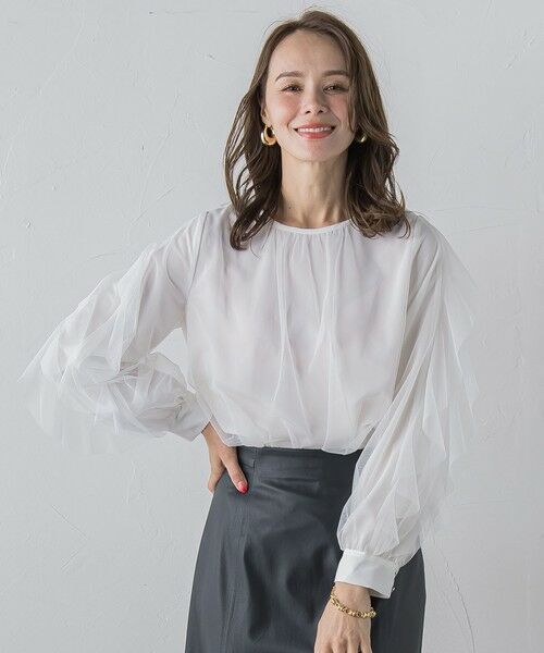 1枚で華やかな着こなしが叶うチュールレイヤードブラウス。