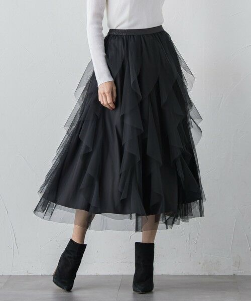 ラッフルチュールスカート≪洗濯機で洗える≫