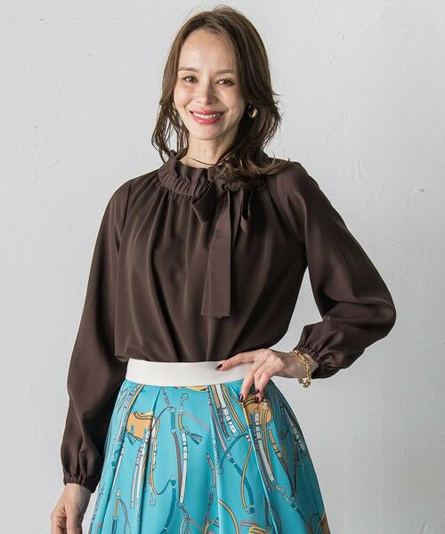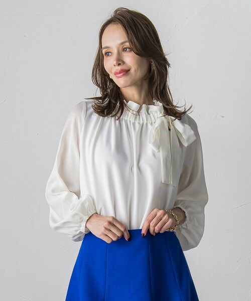 袖とリボンは程よい透け感と光沢・表情感のあるブラウス生地を使用。
