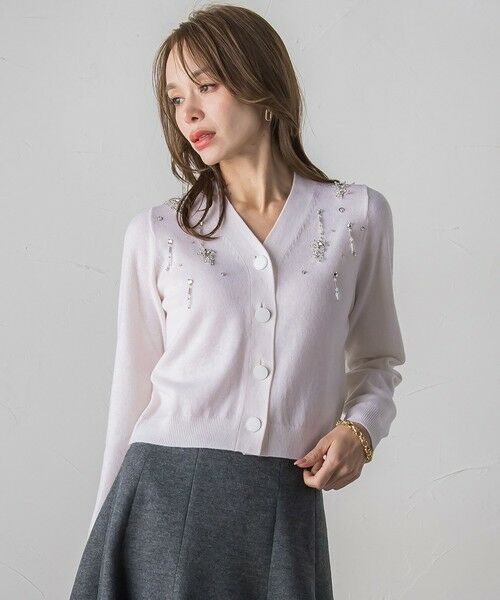輝くビジューモチーフがポイントのVネックカーディガン。