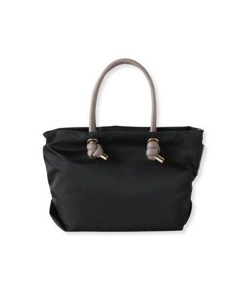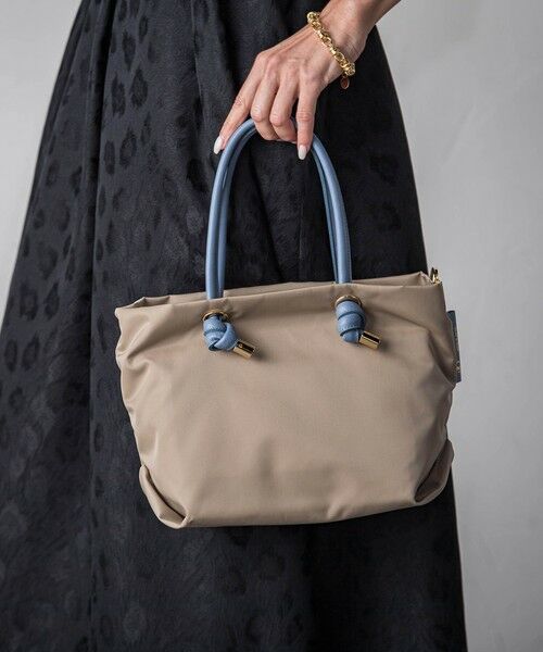 シンプルなデザインのボディにノットハンドルがアクセントになったトートバッグのSサイズ。内側は3層に分かれており、ファスナーを閉めたままアオリポケットにスマホやパスなどを収納できるので通勤などで安心してお使い頂けます。長財布やペットボトルなどが収納でき、ショルダーストラップ付きの2WAY仕様です。 弱撥水性があるのでお手入れも簡単で、軽量なのも特徴です。