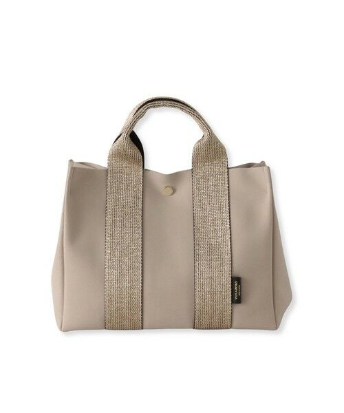 スエード調のハイテク素材にイタリア製ラメテープハンドルがアクセントになったトートバッグのMサイズ。