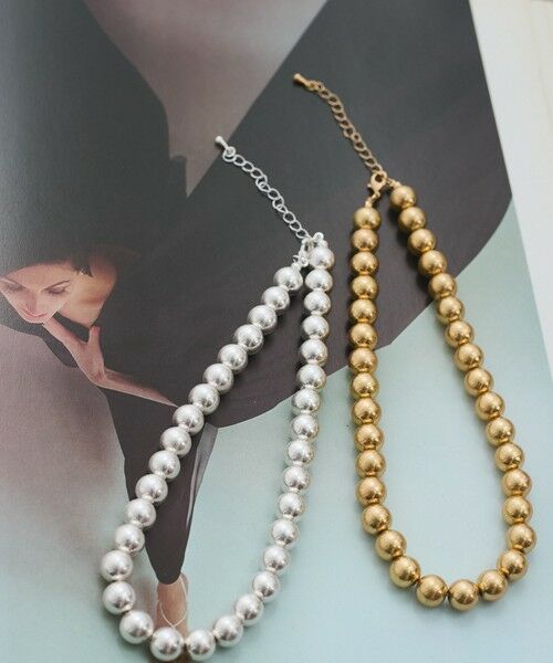 すこし大きめなサイズのボールチェーンがボリューム感あり、旬な雰囲気に。