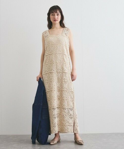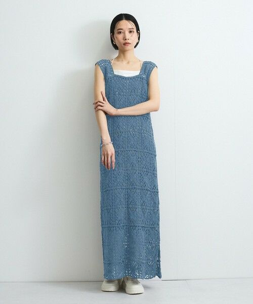 ワンピース全体がクロシェ編みのフラワーモチーフになっていて、