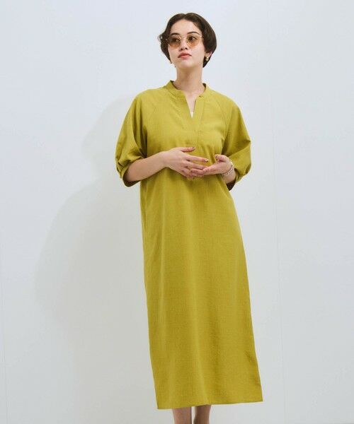 程よく深さのあるキーネックデザインが涼し気な印象に仕上げるワンピースは