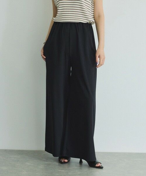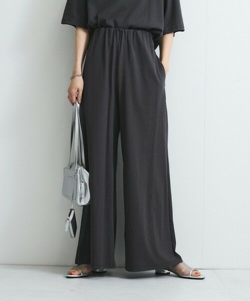 フロントはギャザーデザインになっているジャージー(カットソー)ワイドパンツです。