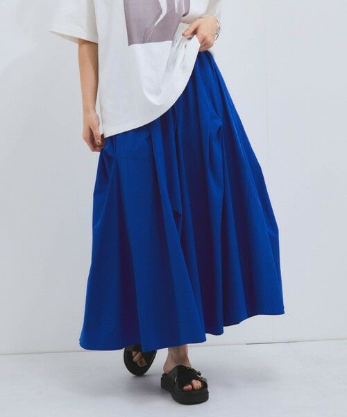 動きのある立体フォルムのコクーンタイプのフレアスカートはモードな印象ながら、