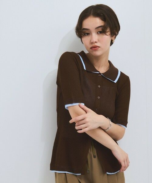 ポロ襟部分がダブルになっており、襟、袖口、裾部分が配色見えのデザインになっています。