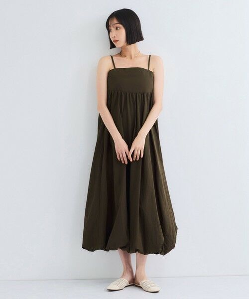 バストラインがストレートデザインになったバルーンヘムキャミワンピースです。