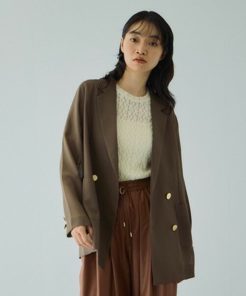 セミシアーメッシュ素材を使用したさりげない透け感がポイントのハンサムジャケットはやや緩めのクリーンなシルエットで、フラットなメタルボタンが凛とした印象を与えます。