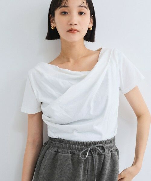 衿元のドレープデザインがニュアンスのあるルックに仕上げるカットソートップスです。