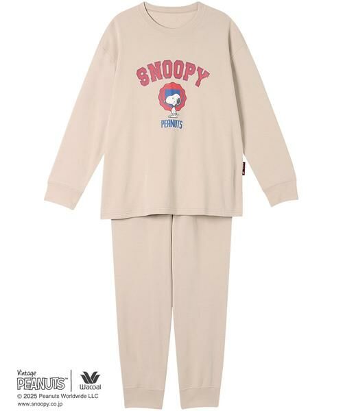 ・前身頃のロゴとスヌーピーを組み合わせたアメリカンカレッジ風のハンドプリントがデザインポイント