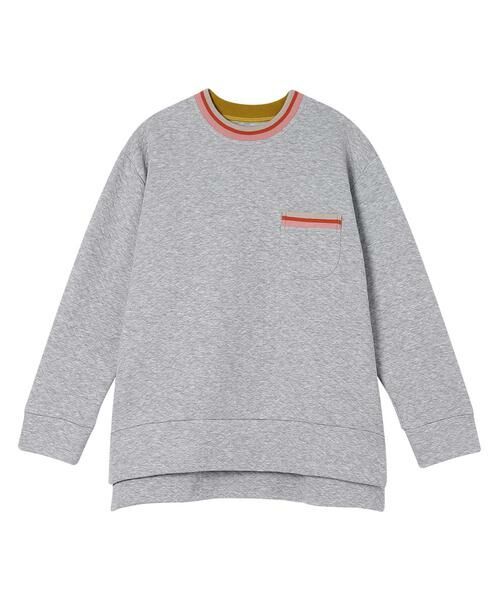 ・ネックやポケット口のリブにあしらわれたニュアンスカラーのボーダー柄がポイント